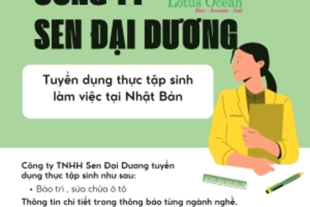 Công ty Sen Đại Dương tuyển dụng thực tập sinh làm việc tại Nhật Bản, bao gồm các ngành nghề:- Xử lý chế biến gia cầm.- Chế biến thủy sản không gia nh...