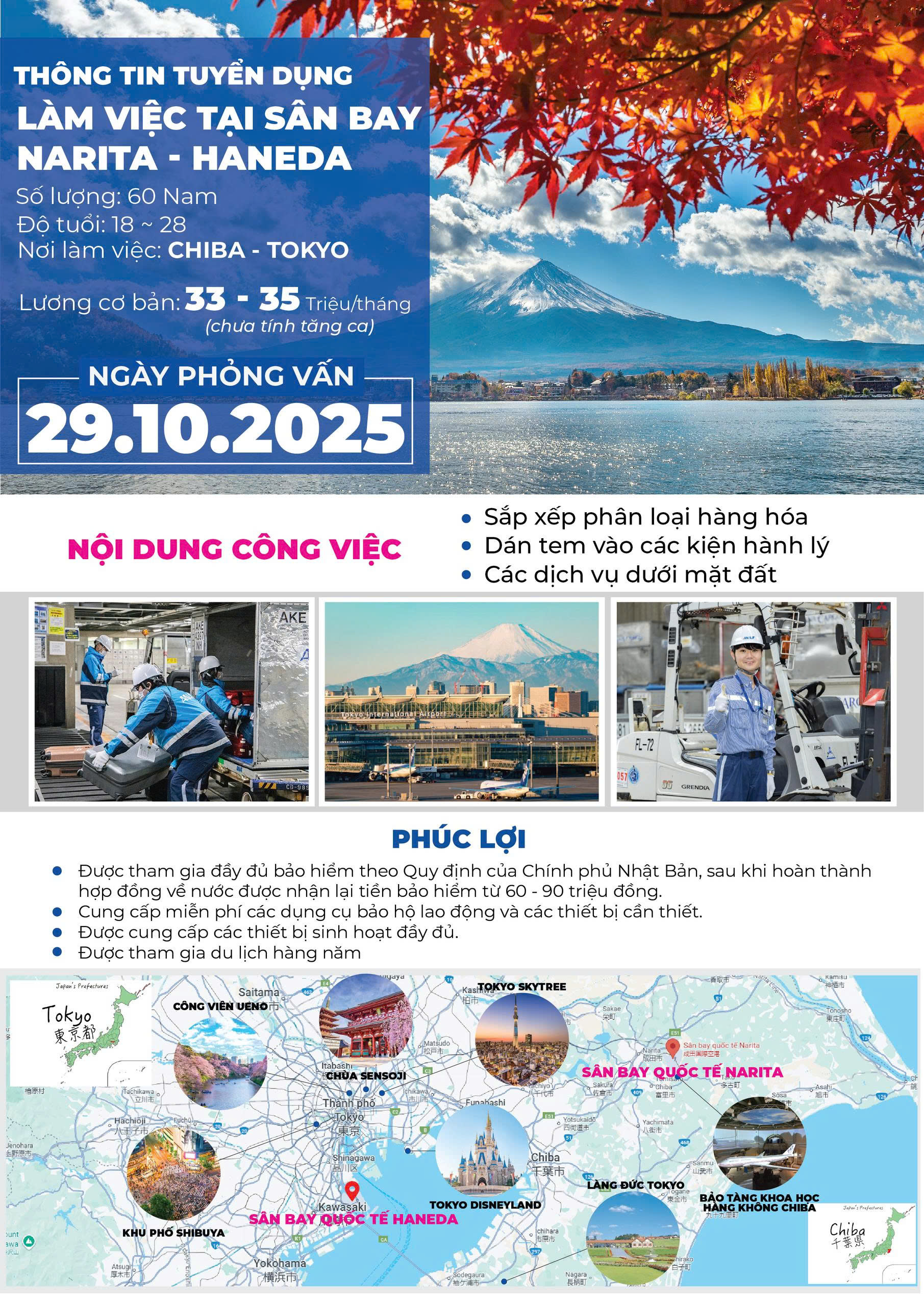 Thứ ba, 09/09/2025 | 14:22 A- A A+ | Công ty TNHH Sen Đại Dương thông tin tuyển dụng nhân viên làm việc tại sân bay Narita - Haneda (nơi làm việc: Nhật Bản) Chia sẻ Lưu Tổng số điểm của bài viết là: 36 trong 36 đánh giá Click để đánh giá bài viết