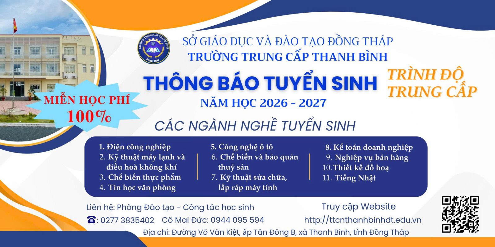 Trường Trung cấp Thanh Bình tuyển sinh các ngành: